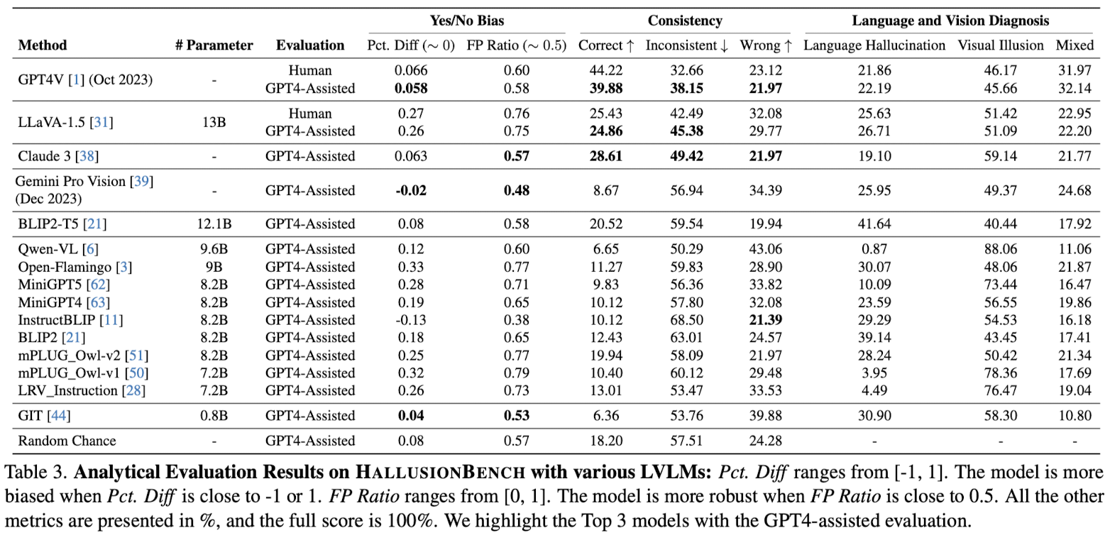 - 15개의 모델에 대해 HallusionBench로 성능 평가
